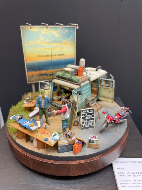 飛行機、艦船、自動車といった実際にあるものを忠実に縮尺したモデルをスケールモデルといいます。実在のモデルを忠実に再現したり、想像の世界でジオラマに仕上げたり、様々な方向性で作品が作られています。ここでは、お客様の作品、店舗に展示している作品をご紹介します。